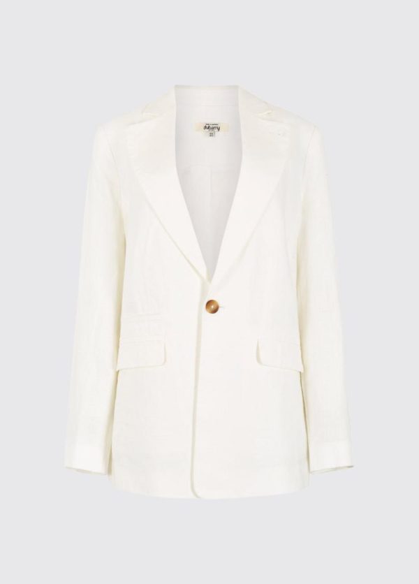 Elevate your warm-weather wardrobe with our impeccably tailored Avonlea linen jacket, designed to effortlessly transition from daytime sophistication to evening elegance. This versatile piece features a contemporary single-button design with a relaxed silhouette that pairs beautifully with our matching Dubarry Maryland shorts, your favorite jeans, tailored trousers, or dresses. Expertly crafted in Portugal from premium 100% European linen, this breathable jacket ensures cool comfort while maintaining polished style for summer events and cocktail occasions.