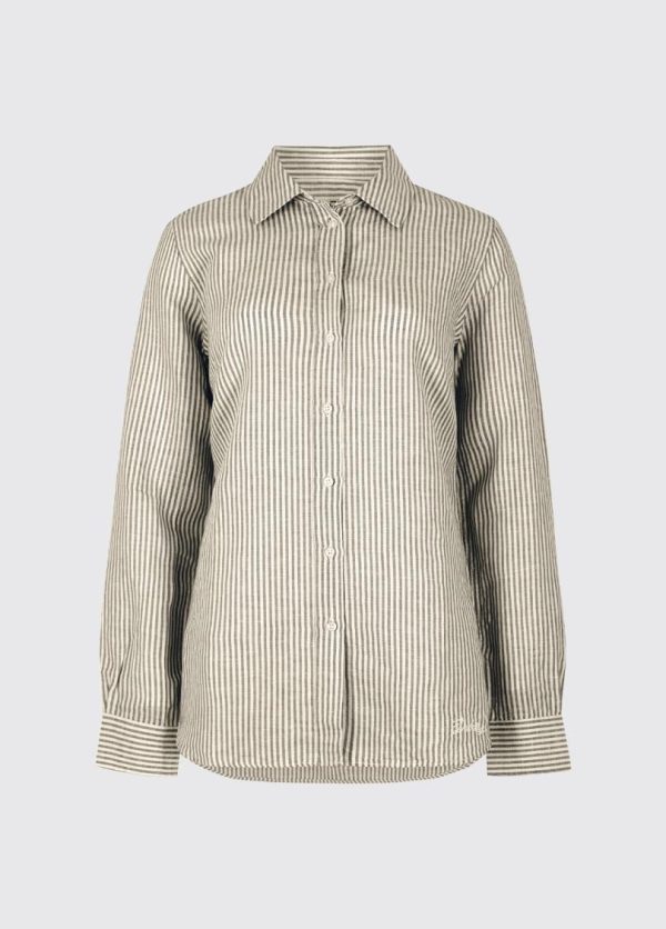 Elevate your everyday wardrobe with our essential long-sleeve Butterfly shirt, crafted from a machine-washable linen-cotton blend that offers exceptional drape and effortless style. Perfect for creating polished looks, this vertically striped button-down shirt pairs beautifully with jeans and Dubarry loafers for sophisticated urban outings. Equally versatile for relaxed summer evenings, it tucks perfectly into linen shorts for timeless vacation style.