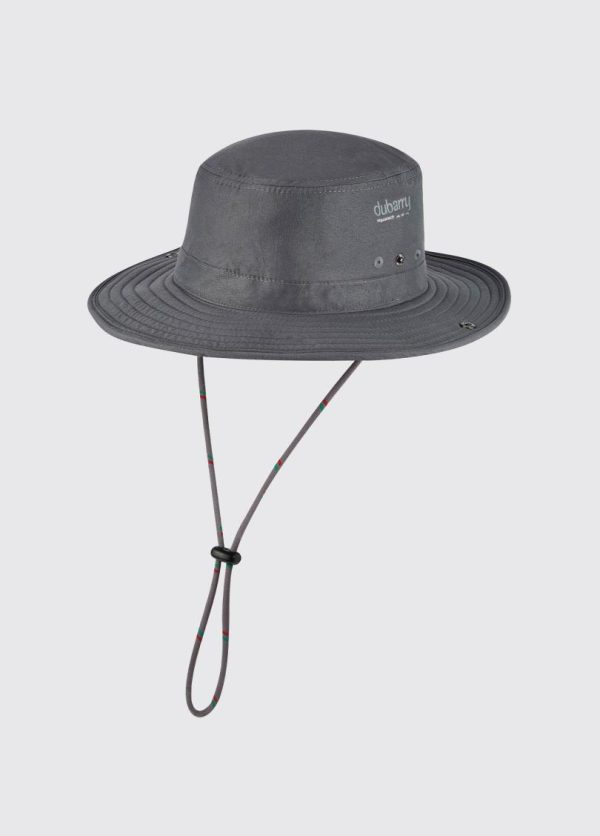 Wide-brim sun hat designed specifically for boating. Lightweight, water-repellent, quick-drying fabric. UPF-50 sun protection. Easily adjustable retention cord.
