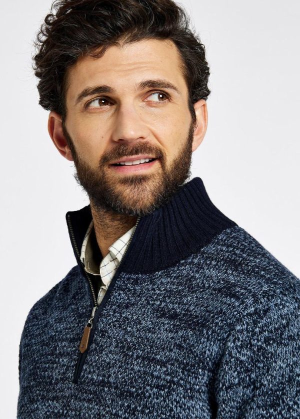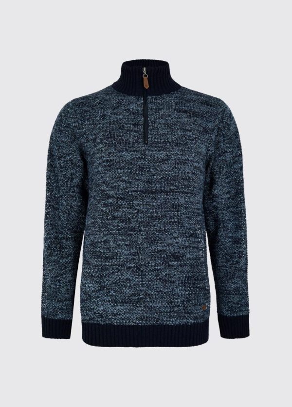 Killimor men’s zip neck sweater in multicolour yarn in navy