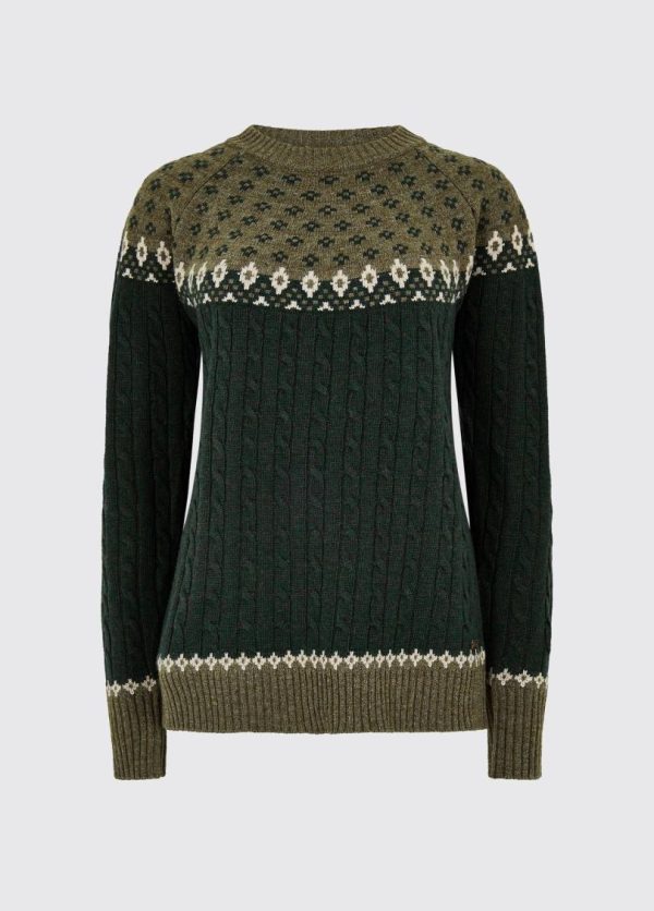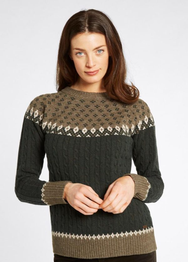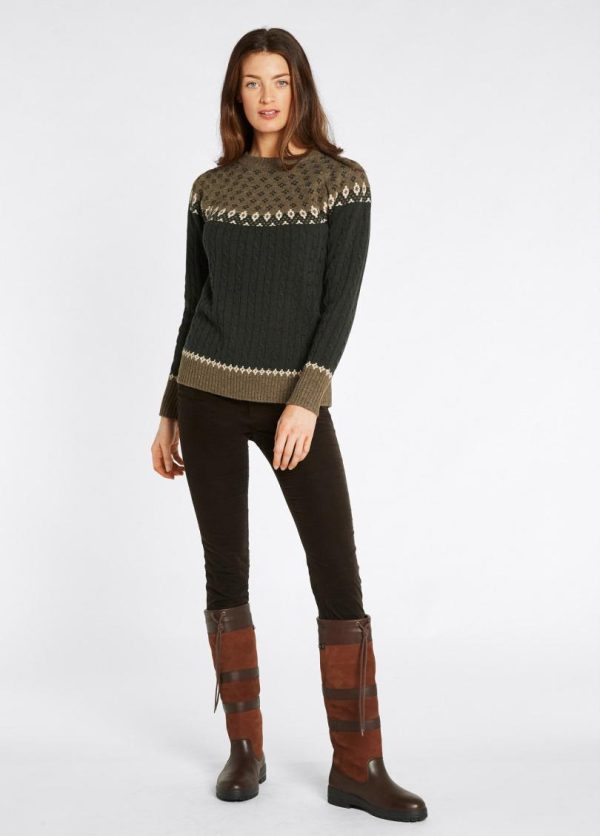 Thornfield women’s chunky knit with Fair Isle pattern in olive