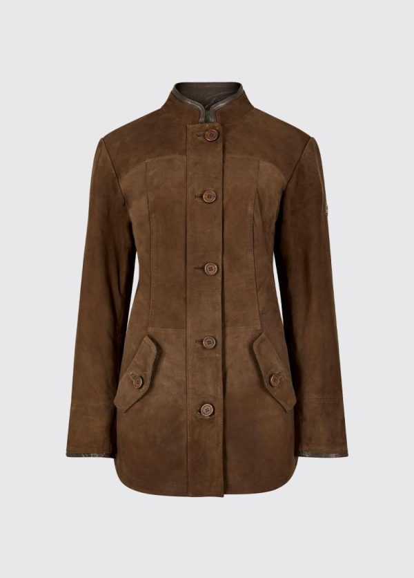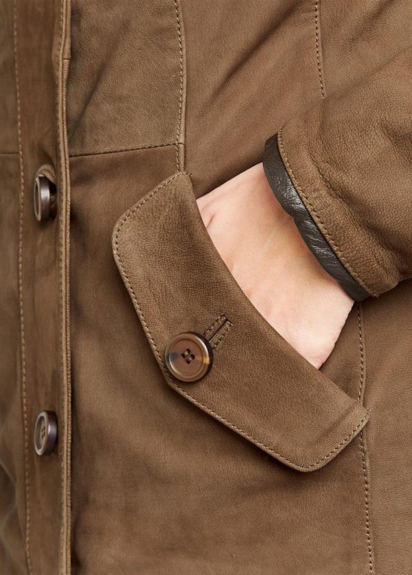 The Joyce women’s leather jacket is the epitome of luxury and style. This mid-length jacket is designed to keep you warm and comfortable while making you look effortlessly chic. The walnut leather is soft and supple, and the quilted lining adds an extra layer of warmth. The standing mandarin collar adds a touch of sophistication to the jacket’s classic yet contemporary style. Whether you’re wearing it around town or in the country, the Joyce leather jacket is the perfect addition to any wardrobe.