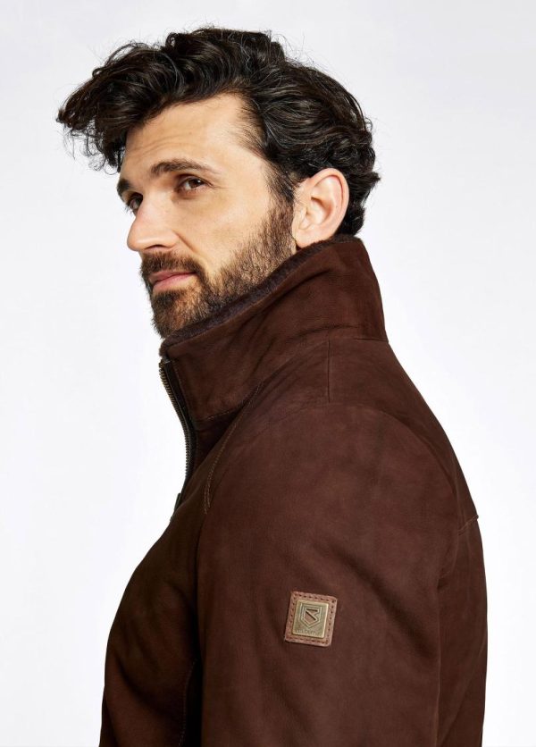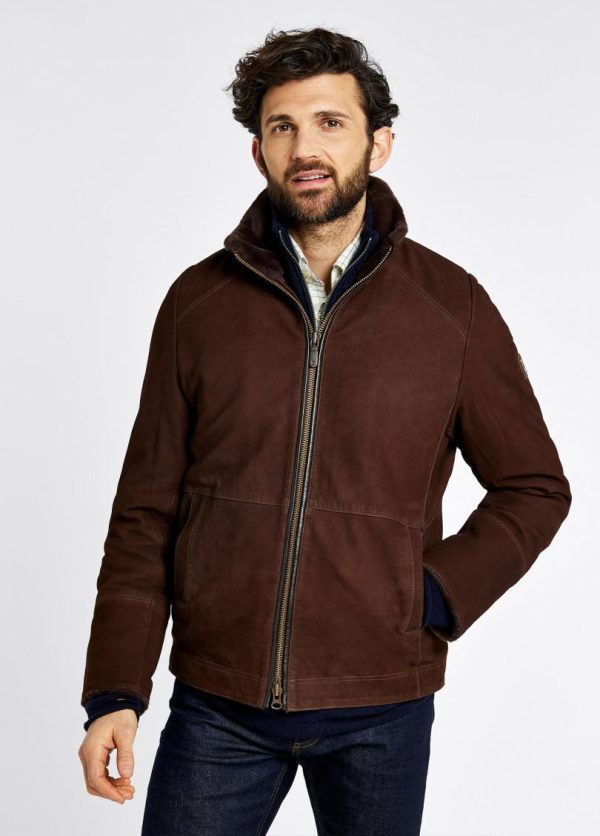 A bear hug of a jacket, this sherpa lined leather coat is uncompromisingly warm. Straight cut with smooth, minimal lines it’s both casual and statement in one, depending on how and where you where it. Frosty march to the local, gloved and Country booted, or laced up in chunky Laois boots heading into town