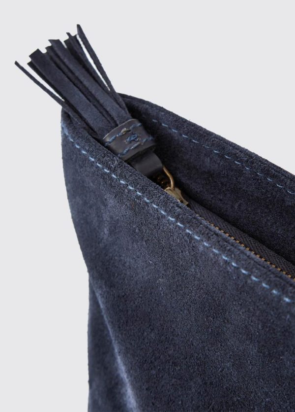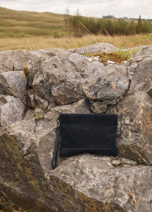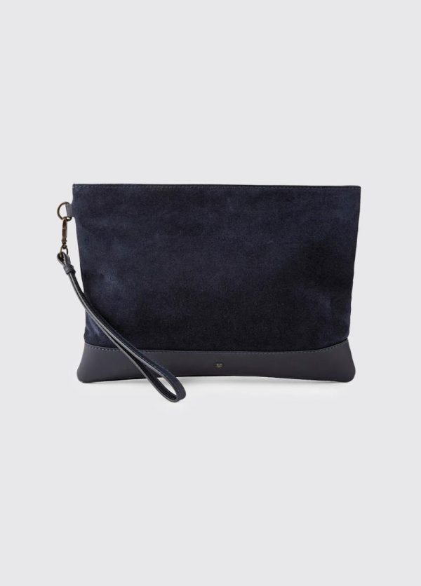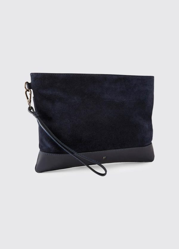 Elevate your style with this sophisticated Dubarry clutch crafted from premium genuine cowhide suede, complete with a convenient detachable wrist strap for versatile carrying options. Available in both navy and rich brown tones.