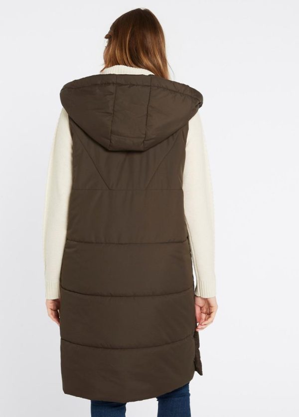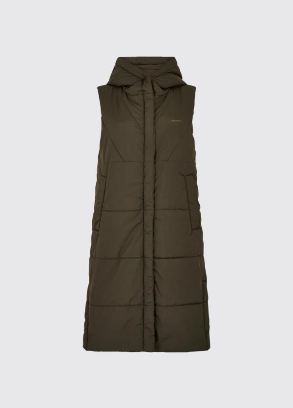 Ryan Women’s Long Length PrimaLoft® Filled Hooded Gilet in Olive