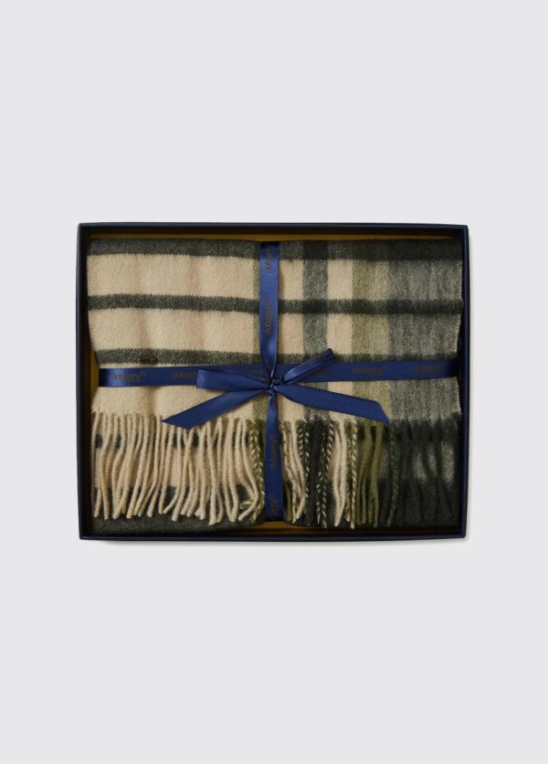 Kildavin cosy wool scarf with subtle plaid pattern in olive