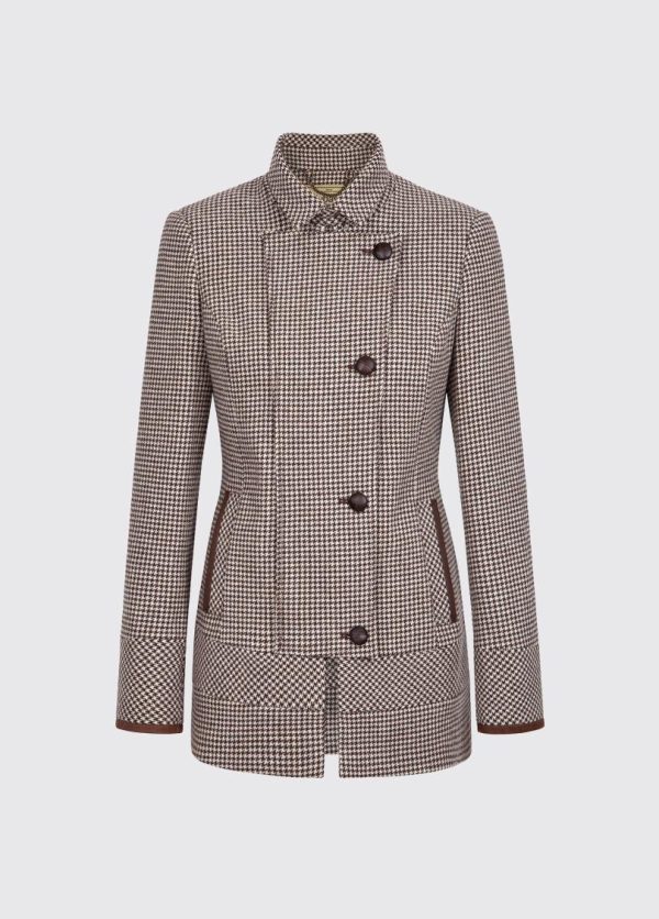 The Willow women’s tweed jacket is ideal for a sporting and elegant country look. Available in a variety of striking tweeds it also has eye-catching leather buttons and contrasting trim details on the pocket and sleeve trims. A versatile stand-up collar fastens to keep out chills or folds down for a neat alternative. Toasty fleece lined pockets will keep your hands warm and the Teflon coated 100% wool repels showers and stains. A jacket to be seen at any country event or cutting a streamlined figure about town.
