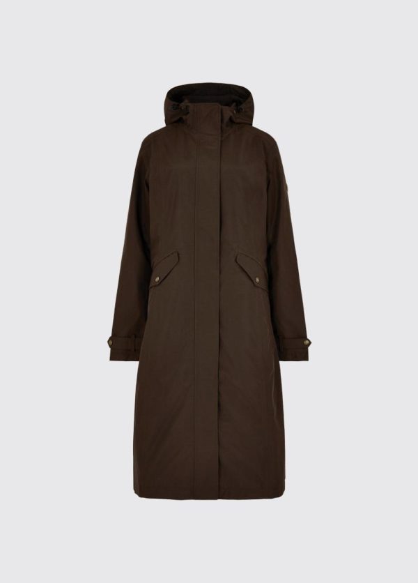 Alderford Ladies Long-line Waterproof Coat in Mahogany
