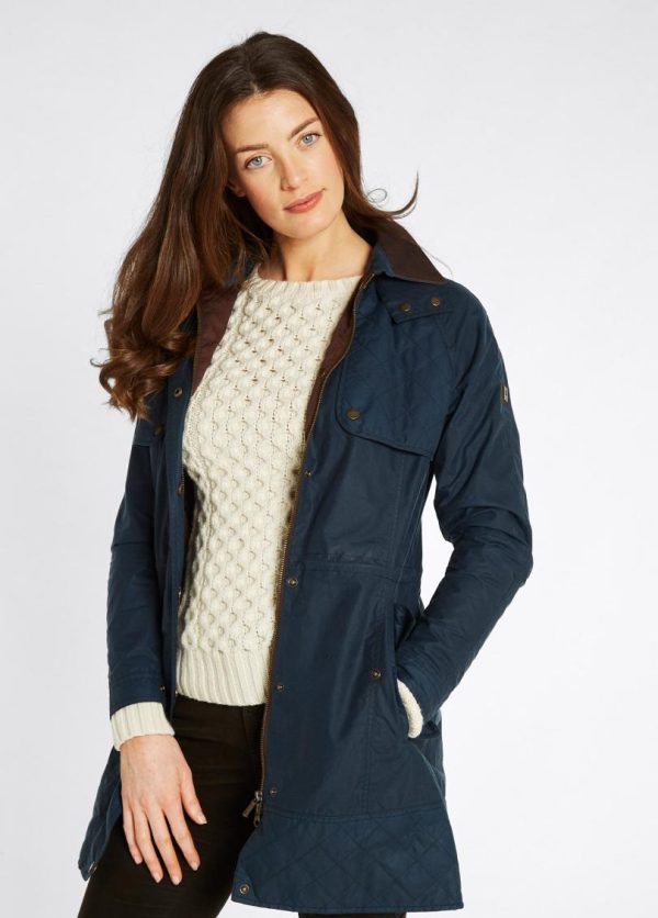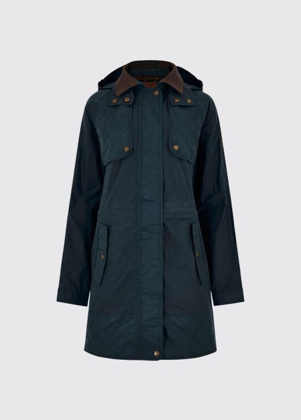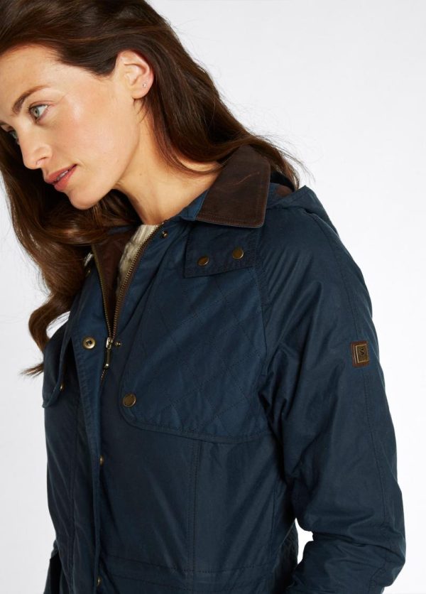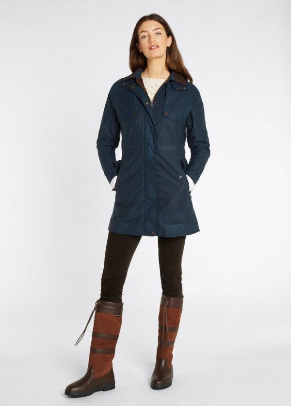 Radford women’s wax cotton coat with quilted detailing in Storm Blue